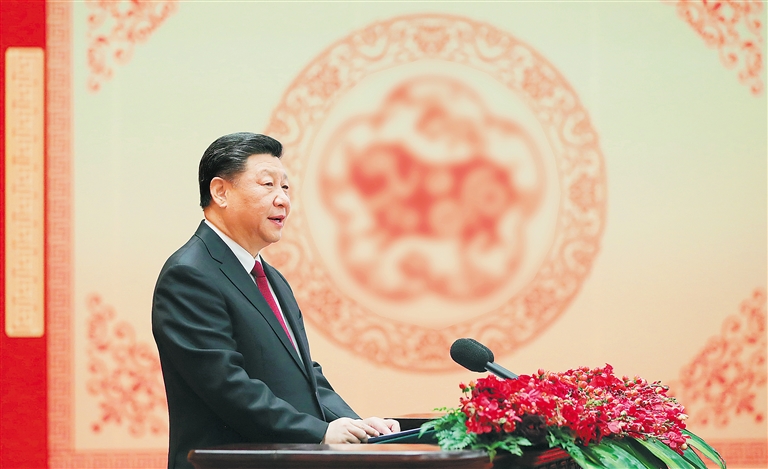 习近平强调,全党全军全国各族人民要在中国共产党坚强领导下,同心同德,开拓进取,用辛勤劳动创造中国人民的美好生活、创造中华民族的美好未来,继续同世界各国人民一道构建人类命运共同体。