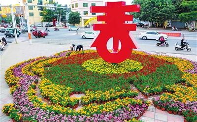 图③2月2日,儋州市白马井镇,鲜花扮靓街道。本报记者 陈元才 通讯员 朱鼎甲 摄