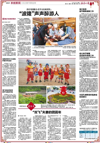 17时30分,热腾腾的韭菜猪肉饺子捞出锅,大家忍不住欢呼起来,开始大快朵颐。 “因为明天要飞早班回海口,晚上9点就要休息,没法看春晚,也不能守岁了。”电话里,锁伟对海南日报记者说,虽然团聚的时间不长,但已经觉得很满足。这个团圆年就是给他们夫妻俩最好的新年礼物!