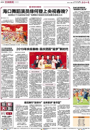 海南日报 文体新闻综合 004 2019-02-061 2019年02月06日 星期三