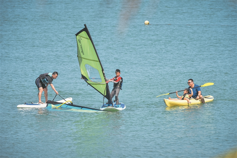 2月6日,海口帆船帆板训练基地,游客享受海上运动。 本报记者 袁琛 摄