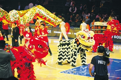 当日,“中国之夜”活动登陆NBA纽约尼克斯队主场麦迪逊广场花园。在纽约尼克斯队主场对阵底特律活塞队的NBA常规赛中场休息时,舞龙舞狮表演让观众感受到中国农历新年的氛围。