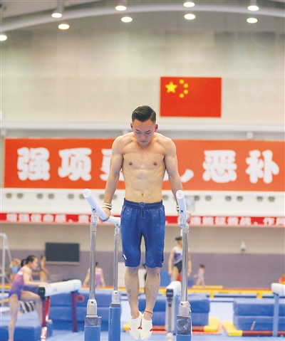 2月6日,国家体操队在北京国家体育总局训练局体操馆进行训练,以刻苦训练的方式度过新春佳节。图为肖若腾在训练中。 新华社发