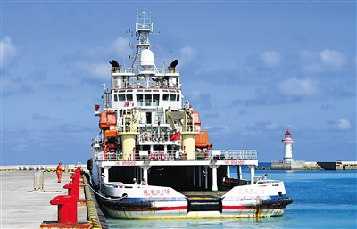 春节期间,交通运输部南海救助局的“南海救115”轮在西沙海域开展海上值守,船上有22名船员坚守岗位。图为2月4日,“南海救115”轮驶入永兴岛码头后靠岸停泊。