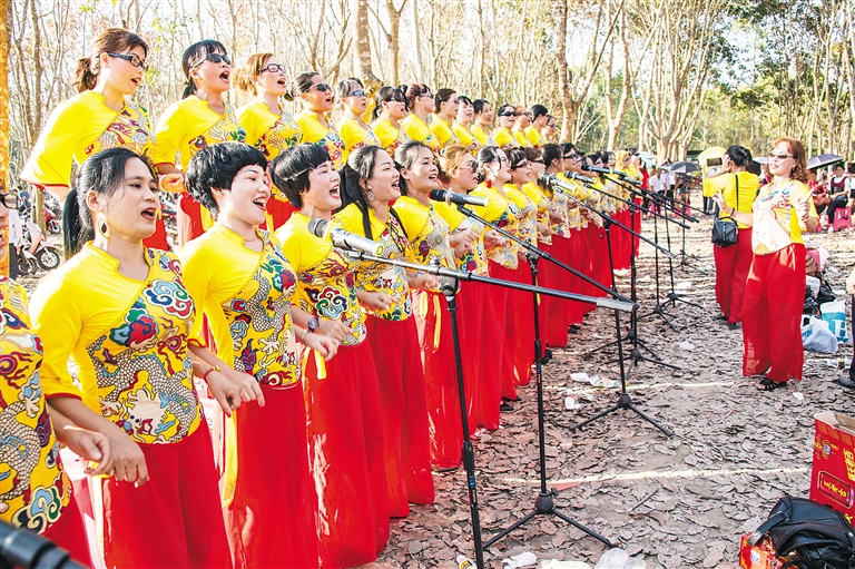 2月7日,在儋州市光村镇苏村橡胶园里,旋律优美的儋州调声唱起来。特约记者 吴文生 摄