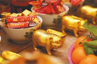 而在一些地方,年画或剪纸“肥猪拱门”,则体现着出浓浓的福文化与年味,以“猪”入画,是取其喜庆吉祥之相,富态能容之体,是勤劳致富、丰收吉祥的象征。而“金猪送福”“金猪报喜”等词语也成了今年春节的热门祝福词,尽管2019年为干支纪年法中的己亥年,是为木猪年,但丝毫不妨碍人们用“金猪”来相互表达新春的祝福。