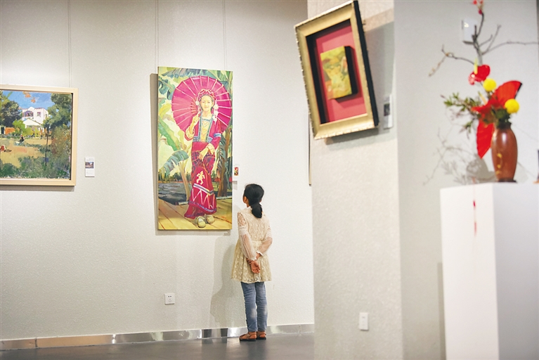 展览以高雅艺术与民间艺术融合为一体,全方位展示艺术名家的精品力作和海南民间非遗艺术,国画、油画、书法、版画、水彩、雕塑以及黄花梨家具、茶、花、香、器等共300多件,给观众带来一场全新的视觉艺术体验和生活美学的感受。展览一开幕,便引来众多游客前往观展,人气很旺。