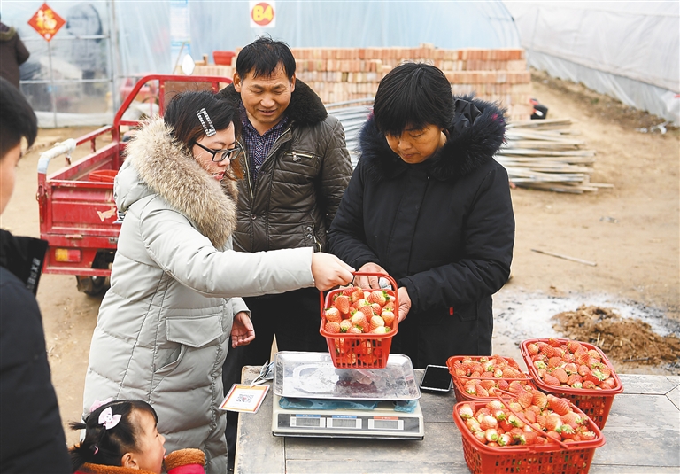 近年来,河南省睢县胡堂乡创新扶贫模式,统筹协调160多户贫困户利用扶贫资金入股辖区一农业基地,建立起集种植、采摘为一体的30余亩“扶贫草莓大棚”。贫困户在赚“分红”的同时又可在农业基地打工挣工资,实现“双丰收”。 新华社记者 刘军喜 摄