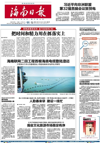 | 海南日报 头版 001 2019-02-111 2019年02月11日 星期一 |