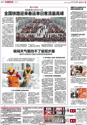 | 海南日报 中国新闻综合 010 2019-02-111 2019年02月11日 星期一 |