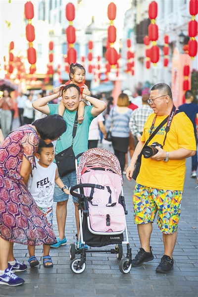 春节黄金周期间,海口骑楼老街热闹非凡,游客在老街感受浓浓年味。 图片均由本报记者 袁琛 摄