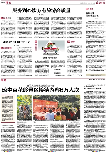 百花岭雨林文化旅游区总经理吴丽介绍,在春节期间,景区刚刚试营业,但是景区接待的游客和本地市民日均近万人,完整的雨林景观,完善的景区设施和细致入微的景区服务,受到了游客的一致点赞,在春节期间,没有接到任何一起投诉。