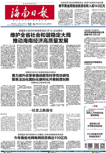 海南日报 头版 001 2019-02-121 2019年02月12日 星期二