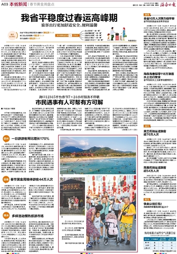 海南日报 本省新闻 春节黄金周盘点 003 2019-02-121 2019年02月12日 星期二