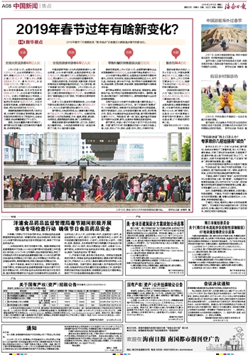 海南日报 中国新闻焦点 008 2019-02-121 2019年02月12日 星期二