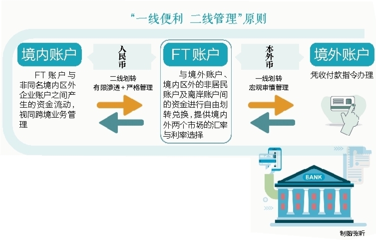 FT账户遵循“一线便利、二线管理”的原则。在一线划转(即FT账户与境外账户、境内的非居民机构账户,以及FT账户之间的资金划转)中,企业凭收付款指令即可,资金结算更加高效。