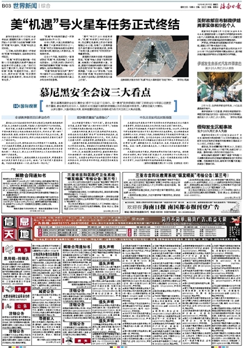 海南日报 世界新闻综合 011 2019-02-151 2019年02月15日 星期五