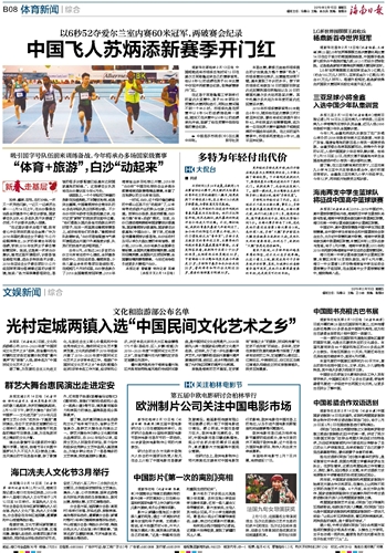 海南日报 体育新闻 文娱新闻 016 2019-02-151 2019年02月15日 星期五