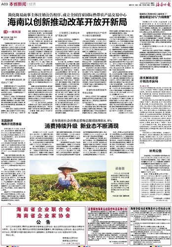 海南日报 本省新闻经济 003 2019-02-151 2019年02月15日 星期五