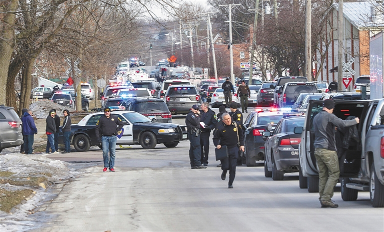 2月15日,在美国奥罗拉市,调查人员聚集在事发现场附近。