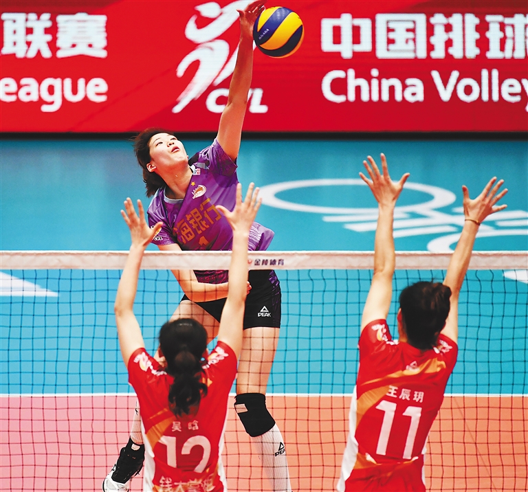 本报讯 2月16日晚,在2018-2019赛季中国女子排球超级联赛半决赛次回合较量中,卫冕冠军天津队客场以3:0战胜江苏队,在5场3胜制的较量中以总比分2:0领先拿到赛点。三局比分为25:19、27:25、25:17。