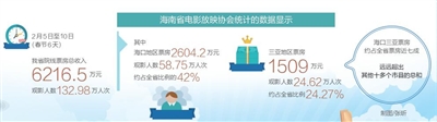 春节黄金周,难得的休闲时光,能与亲友相聚,相约看一场电影,是一个不错的选择。海南日报记者注意到,春节期间,海口三亚等地影院均出现不同程度的火热景象。“不算除夕,光初一到初六这6天的票房,就超过平时一个月的总量!”中视国际影城海口喜盈门店负责人高兴地告诉记者。