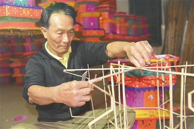 除了花篮灯、鱼灯等传统的灯样,小鸟、飞船等新式样的花灯,邹宏达也会做。“过年喜庆,小孩子们很喜欢。”他说,遇到有设计要求的花灯,他会用心思索良久。
