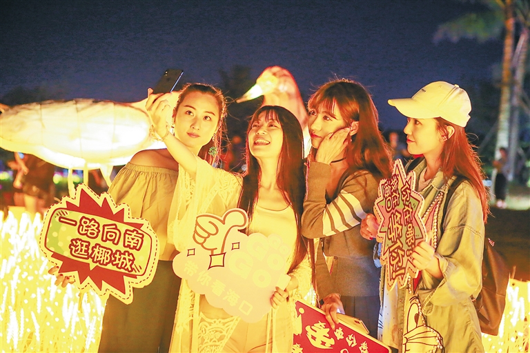 “这金色的麦田不错啊,还有百鸟图,真心不错。”踏进美舍河凤翔湿地公园灯展草坪,广西文艺广播主持人莉香兴奋地邀请同行的其他网红主播一起合影。随后网红主播们也纷纷拿出自己的手机,以直播的形式分享自己的海口体验之旅。