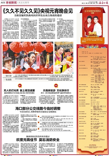 海南日报 本省新闻 关注元宵节 003 2019-02-191 2019年02月19日 星期二