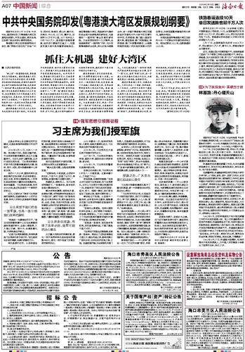 海南日报 中国新闻综合 007 2019-02-191 2019年02月19日 星期二
