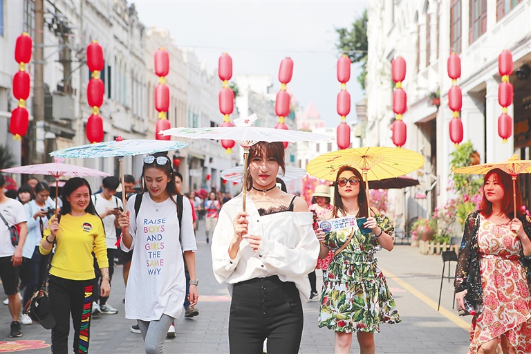 “走进这里面,顿时让人有一种回到上世纪初的味道。”当天上午9时,刚刚走进海口骑楼老街,“有妖气的小狐狸”立刻展开直播杆,向在线的网友展示海口美景。一群穿着旗袍的游客款款走来,网红主播也拿出手机拍照,向所在新媒体平台网友展示自己所看到的美景。