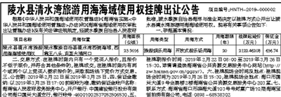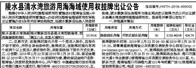 陵水县清水湾旅游用海海域使用权挂牌出让公告