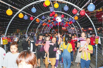 “孩子还没有玩够呢,明天继续来挑战。”农历正月十三的晚上,来自山东的游客万女士与家人共同参与到“翻滚的槟榔”“愤怒的气球”“投壶幸运手”的游戏中,玩得不亦乐乎。
