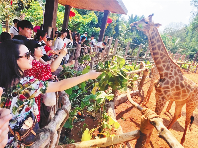 ② 2月19日,游客在海南热带野生动植物园开心游玩。本报记者 张茂 摄