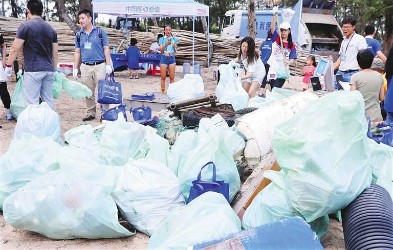 “完全感觉不出来这是一场捡垃圾的环保活动。”在不到1小时的捡拾过程中,志愿者们奔跑着、欢笑着清理一个个海滩卫生死角。活动主办方负责人介绍,此次活动的亮点就是它的国际化、趣味性和时尚感,从设计一新的胸牌和背景墙,到健康靓丽的双语主持人;从贯穿始终的国际流行音乐,到中间穿插的环保答题、瓶盖投篮等小游戏,让参与公益的志愿者们乐在其中。