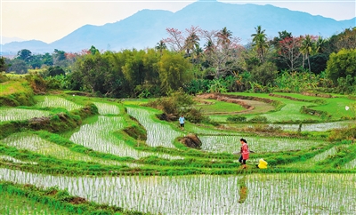 编者按:三亚崖州,绿苗青青,溪水潺潺,早来的暖阳让农民在春节前便将秧苗入了田;海口琼山,水面如镜,线条分明,不等年过完人们便叫来耕土机犁了田;昌江七叉,绿色梯田,红艳木棉花,交相辉映成最美风景线;琼海博鳌,忙碌的身影,葱绿的田野,构成一幅幅田园风景画。
