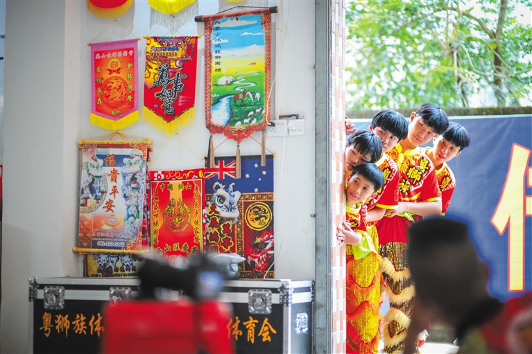 “每到过年和公期,不看一场醒狮,总觉得缺了什么。”在60余岁的府城居民杨旺的记忆中,醒狮早已成为大伙的乡愁,尤其上世纪的七八十年代是醒狮运动最盛行的时候,当时大多数村庄中都有醒狮队。一到节庆,村中醒狮队就会出来表演,醒狮表演不仅寄托着趋吉避凶、消灾降福的期望,更能将全村的斗志凝聚在一起,给人们希望和活力。