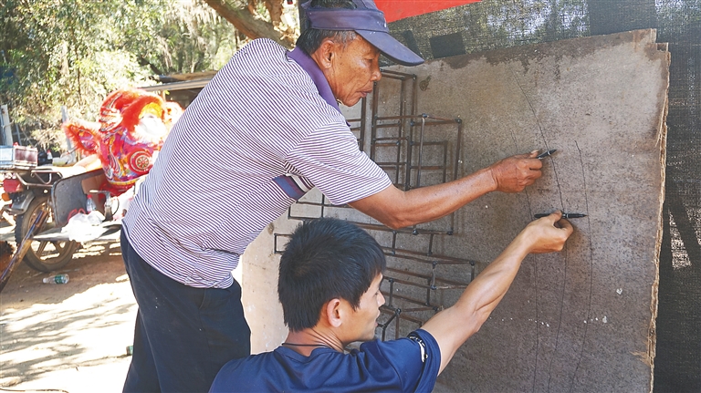黄流花灯享誉琼州,与当地匠人精心设计制作息息相关。年过古稀的老人邢福源介绍,黄流当地共有7个村坊制作花灯,今年有4个坊参与制作。在邢福源的带领下,海南日报记者来到当地较有名气的西北坊。元宵将近,村民们正在赶制花灯,刺耳的机械切割声和电焊声此起彼伏。