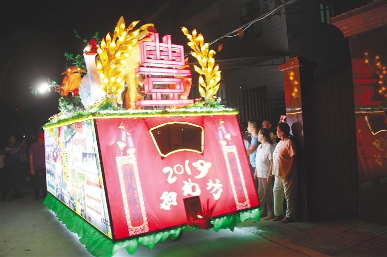 每逢元宵游花灯之时,亦是黄流各坊秀匠艺的时候。“从花灯的外形、颜色到使用的技巧都是各个坊比拼的内容。” 邢福源说。