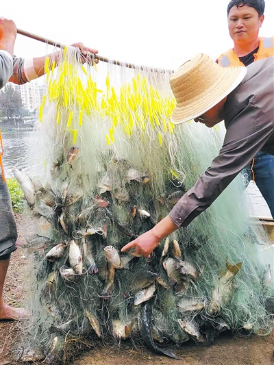 “就算是养殖户承包的鱼塘,撒下500米的渔网也捞不上这么多。”参与打捞的渔民乔飞龙感慨,美舍河里的鱼不仅数量多,而且个头大。