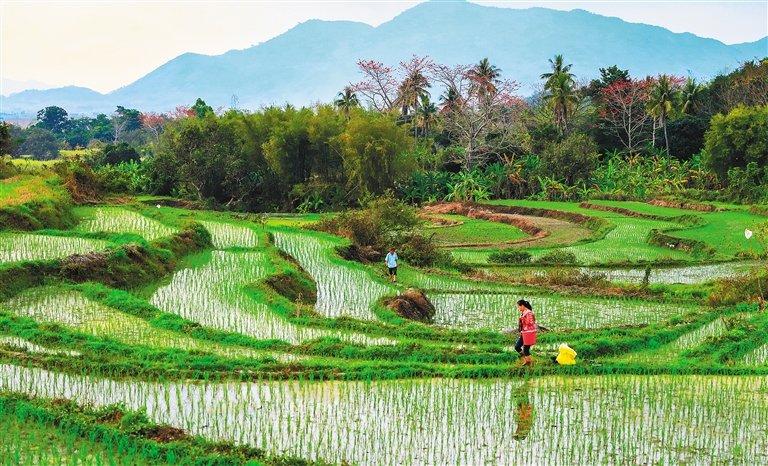 正是自海南始,一幅忙碌的春耕图由南向北徐徐展开。那些历史烟云中散落的春耕图景,那些葱绿田野中展现的春耕风景线,绘就琼岛春天美丽希望的画卷。