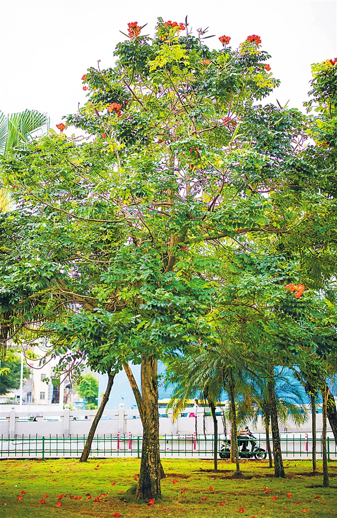 这一绿化树种是火焰木。花期未到时,它是一株普通绿植,不起眼不精彩;开花时,则如火焰般灿烂夺目。它的“变身”,每年都如期而至,记录下海南季节变化的“高光时刻”。