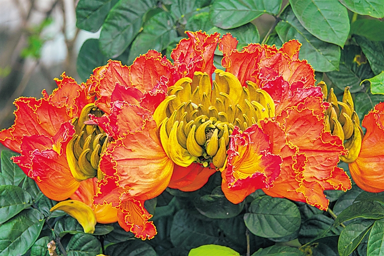 推窗见绿,四季有花。如今,在我省不少市政道路或高速公路两旁,都能看到火焰木的身影,这一喜光、喜高温高湿、喜土层深厚的树木,扎根在人们工作生活的咫尺范围之内,愈来愈受到更多人的关注和喜爱。