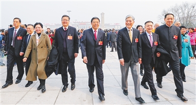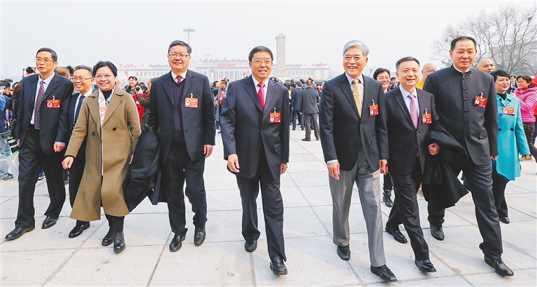 3月3日下午3时,中国人民政治协商会议第十三届全国委员会第二次会议在北京人民大会堂开幕。图为住琼全国政协委员满怀信心步入会场。 本报特派记者 张茂 摄