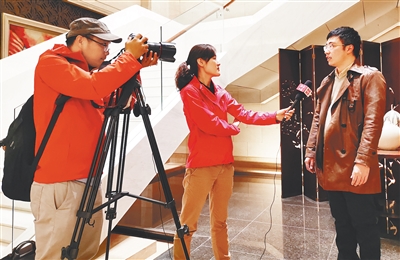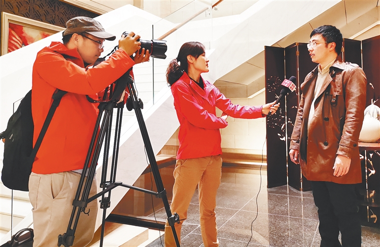 3月3日,海南日报融媒体记者在北京采访海南籍青年创业者高巍。本报特派记者 张杰 摄