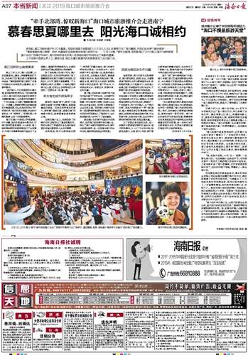 | 海南日报 本省新闻关注2019海口城市旅游推介会 007 2019-03-041 2019年03月04日 星期一 |