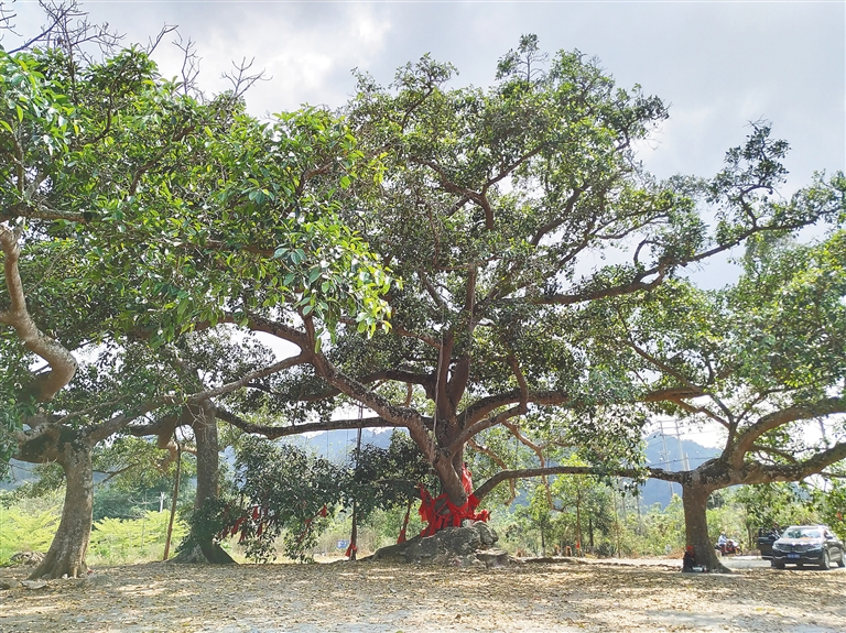 听说东方的天安乡有一独特景观——六体连榕,为了一探虚实,2月26日,海南日报记者驱车一个多小时,从东方市区出发,走东方大道转314省道,约莫行驶45公里后再转755县道,行驶5公里多的路程后,来到了天安乡六体连榕的面前。