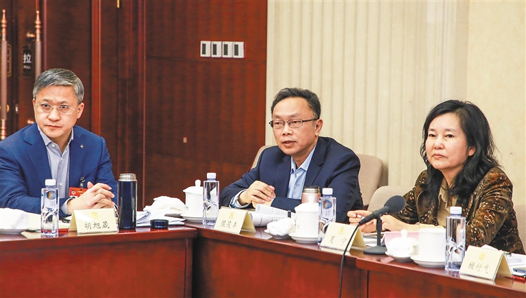 3月5日下午,全国政协十三届二次会议举行小组会议,住琼全国政协委员侯茂丰(中)参与讨论政府工作报告。 本报特派记者 张茂 摄