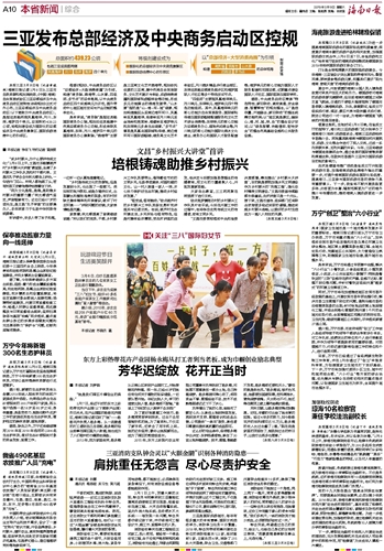 海南日报 本省新闻综合 010 2019-03-091 2019年03月09日 星期六