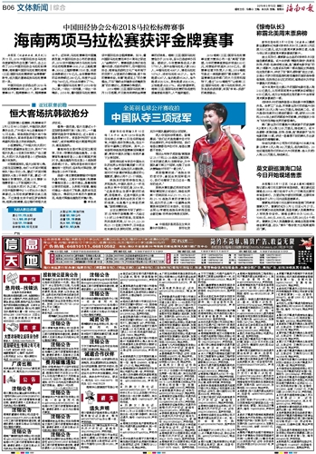 海南日报 文体新闻综合 014 2019-03-121 2019年03月12日 星期二